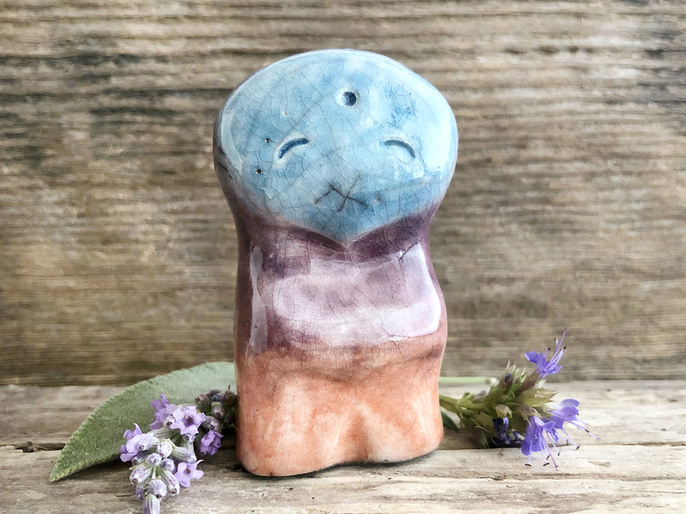 Elemental sky spirit raku sculpture | Shinto shamanism guardian statue